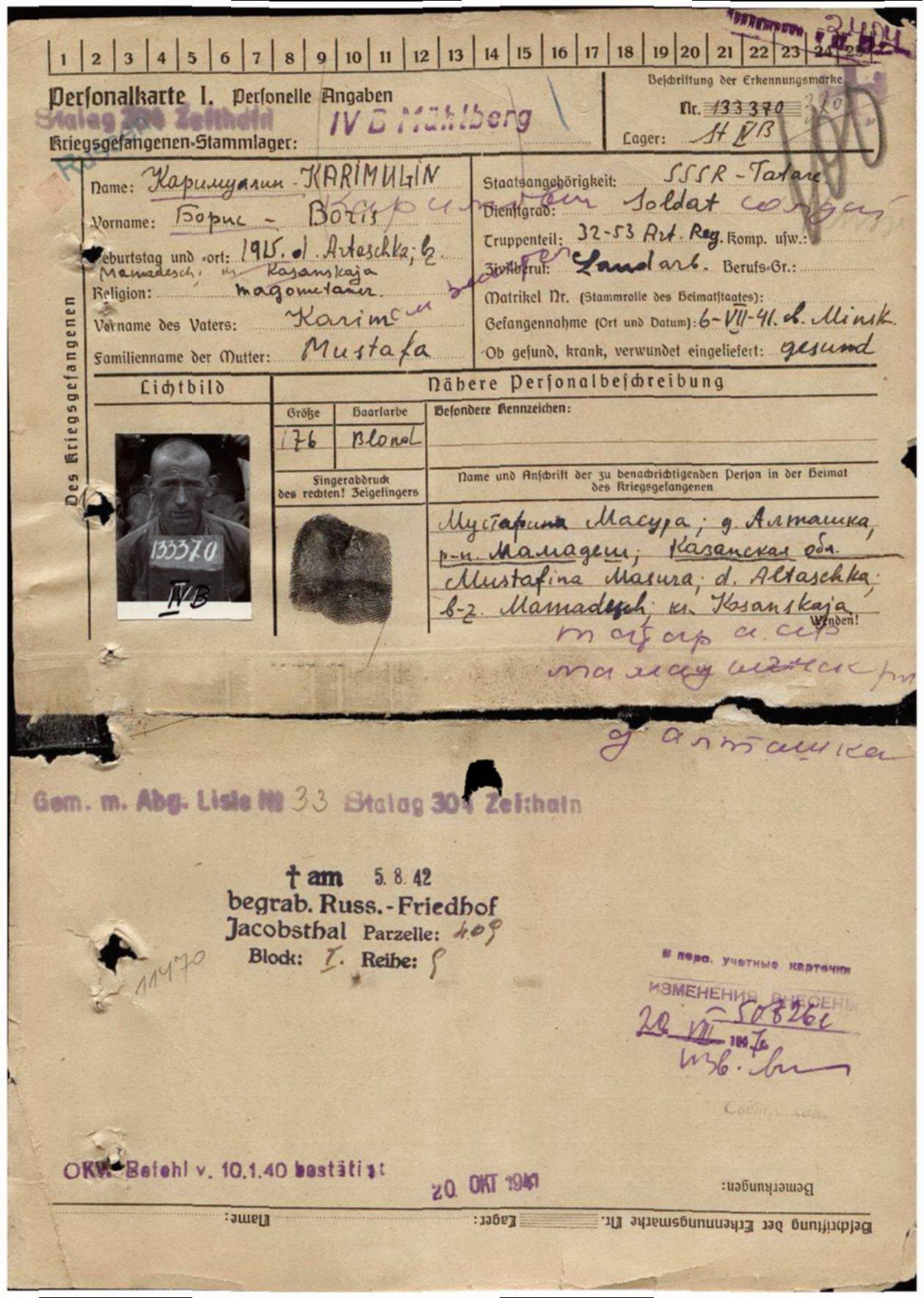 Номер фонда источника информации Картотека военнопленных офицеров...