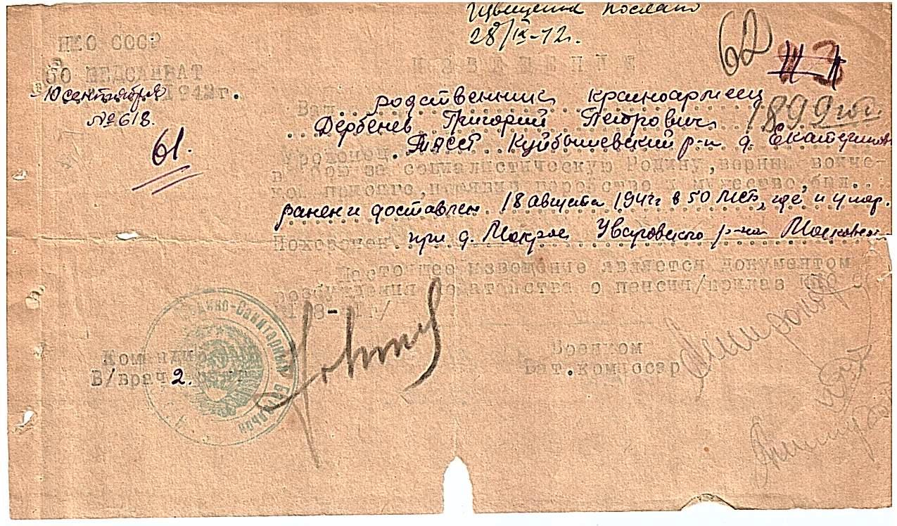 Re: ДЕРБЕНЕВ ГРИГОРИЙ ПЕТРОВИЧ