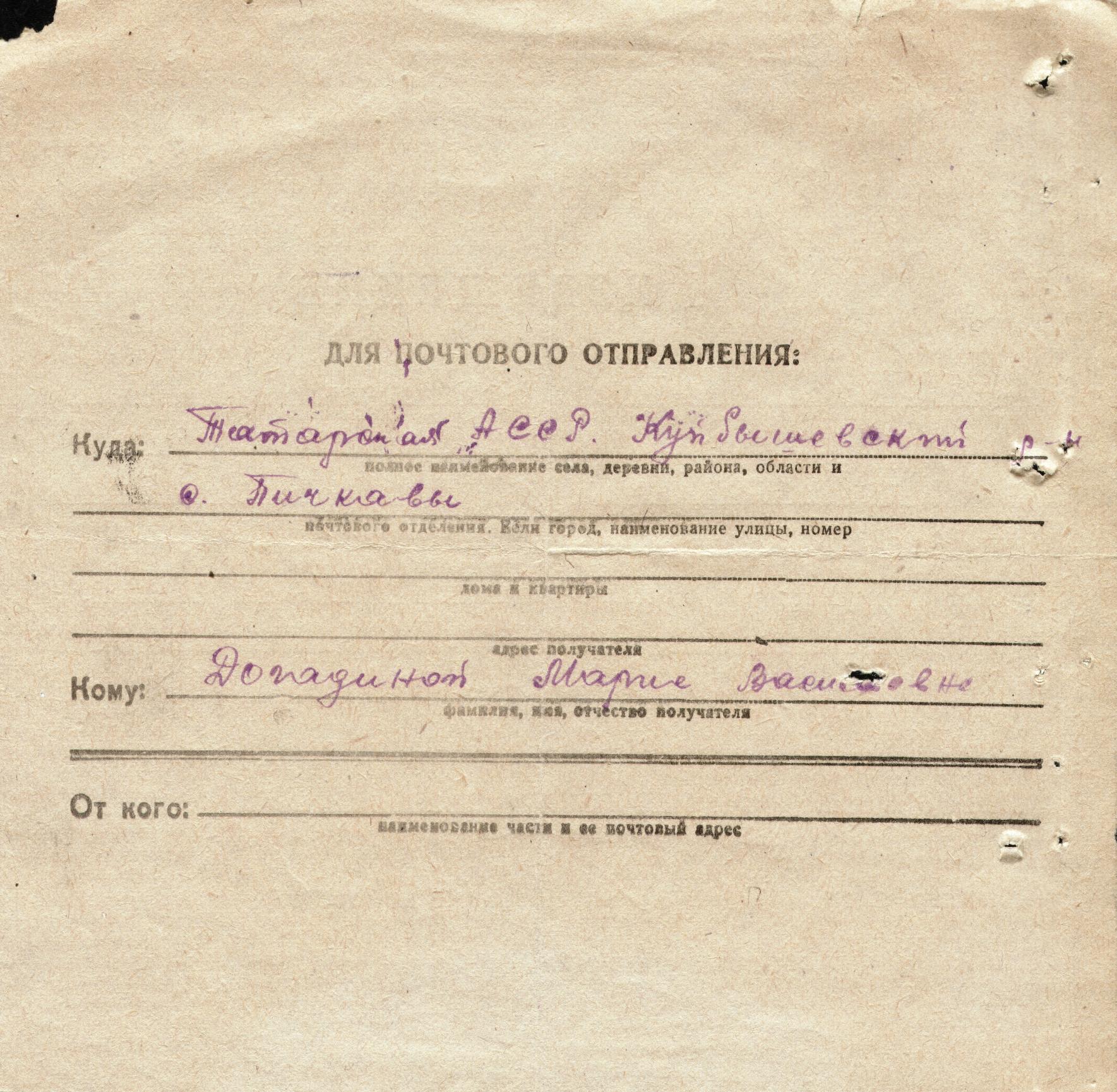 Место рождения Татарская АССР, Куйбышевский р-н, с. Пичкавы