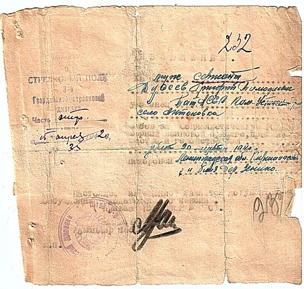 Последнее место службы 3 гв. сд 9 сп