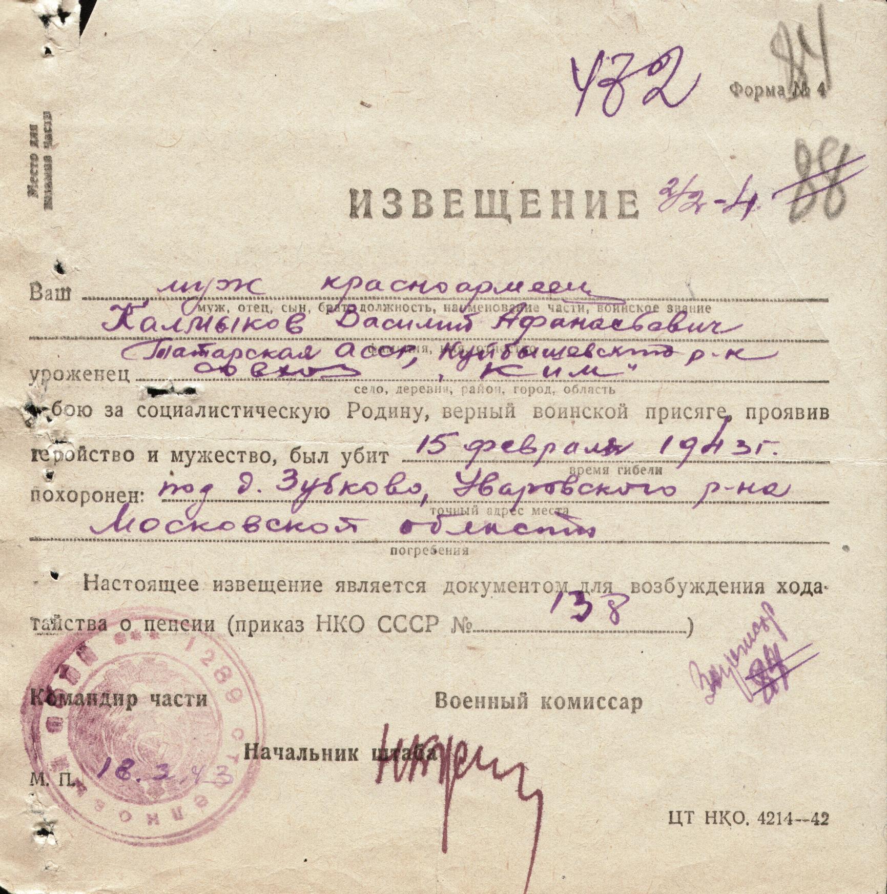 Re: КАЛМЫКОВ ВАСИЛИЙ АФАНАСЬЕВИЧ