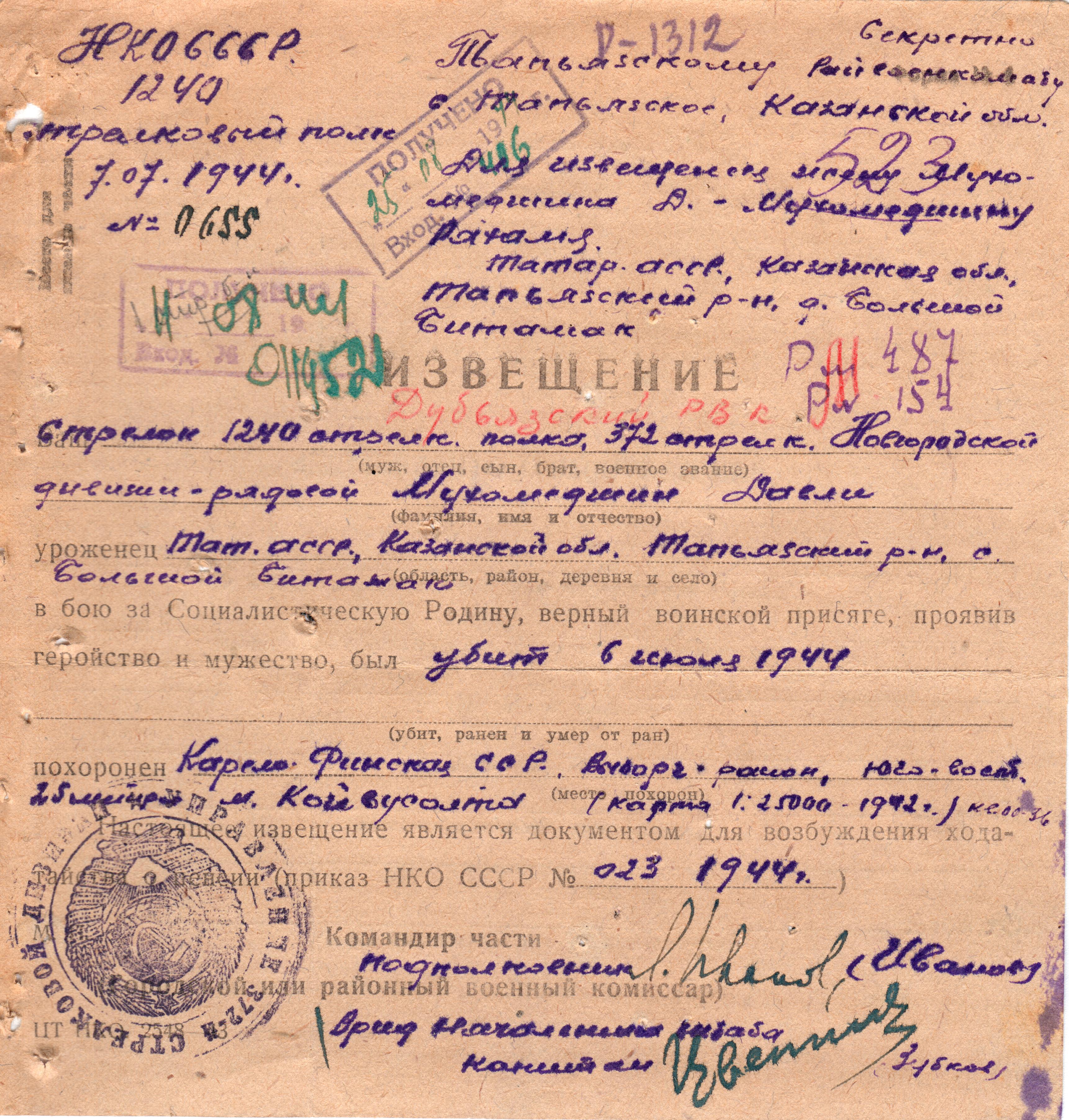 Дата выбытия 06.07.1944