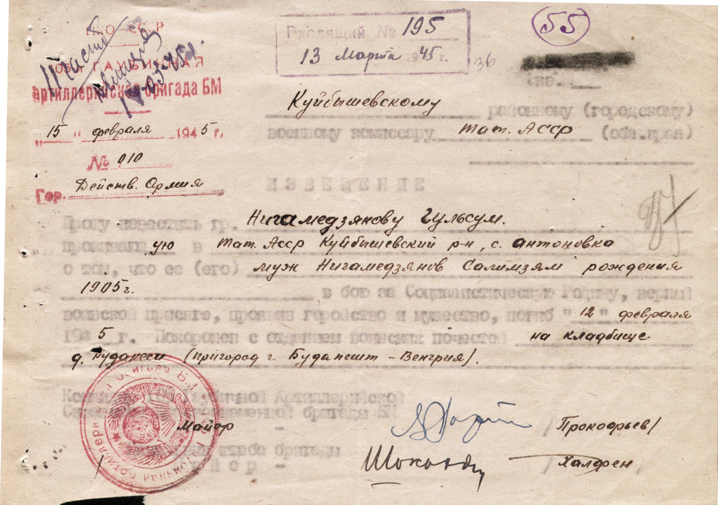 Дата выбытия 12.02.1945