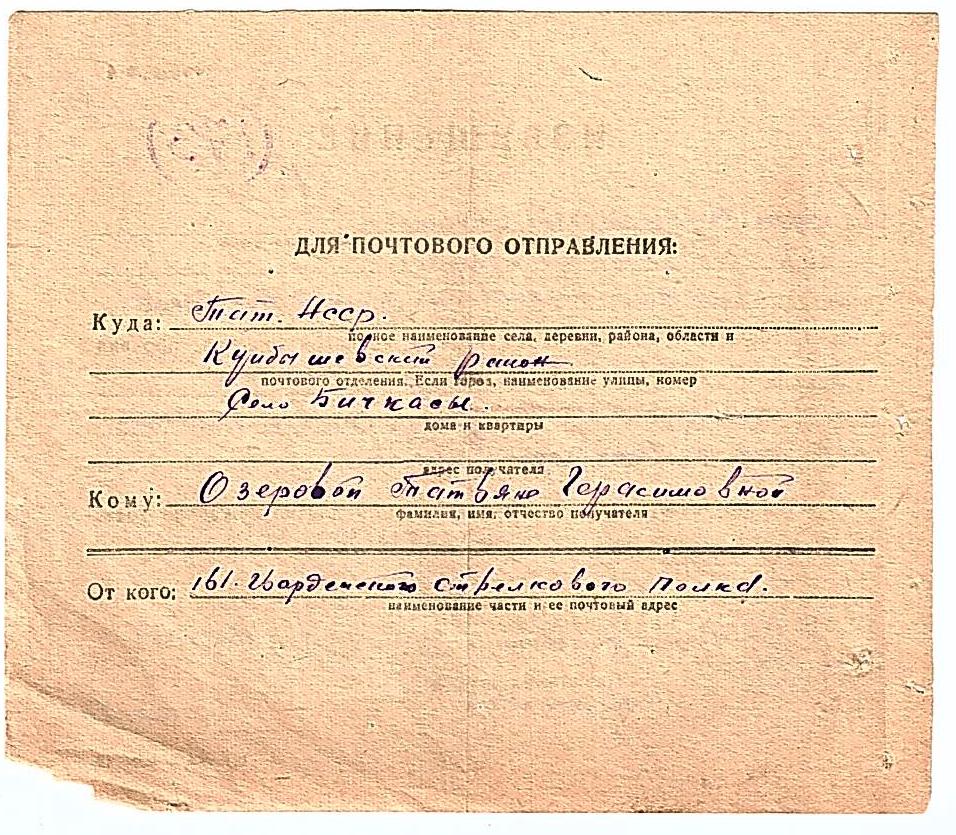 Опубликовано 8 июня, 2009 - 11:50 пользователем Михаил Черепанов Вернулся(лась)Книга памяти: Республика Татарстан (ТАССР) Алексеевский (Билярский) Республика Татарстан (ТАССР) Спасский (Куйбышевский, Кузнечихинский) Учетные данные г.р.: 1908область рождения: ТатАССР место рождения: с.Караваево Алексеевский район место жительства до призыва: с.ПичкассыРВК: Куйбышевским РВКзвание: кр-цместо службы: 161 гв.сп 53 гв.сддень выбытия: 26месяц выбытия: 2год выбытия: 1944причина выбытия: считался убит - был раненобл. выбытия: Псковская обл.место выбытия: Новосельский р-н,д.Скоборыопись: 18002дело: 192лист: 98прим.: 1 Комментарии Re: ОЗЕРОВ МИХАИЛ ИВАНОВИЧ Постоянная ссылка (Permalink) Опубликовано 18 ноября, 2013 - 21:18 пользователем Мидхатов Ильхам... Карточка в http://tatfrontu.ru/- http://tatfrontu.ru/person/ozerov-mihail-ivanovich-0 Был тяжело ранен, демобилизован по ранению в конце 1944 года. Мидхатов Войдите или зарегистрируйтесь, чтобы отправлять комментарии