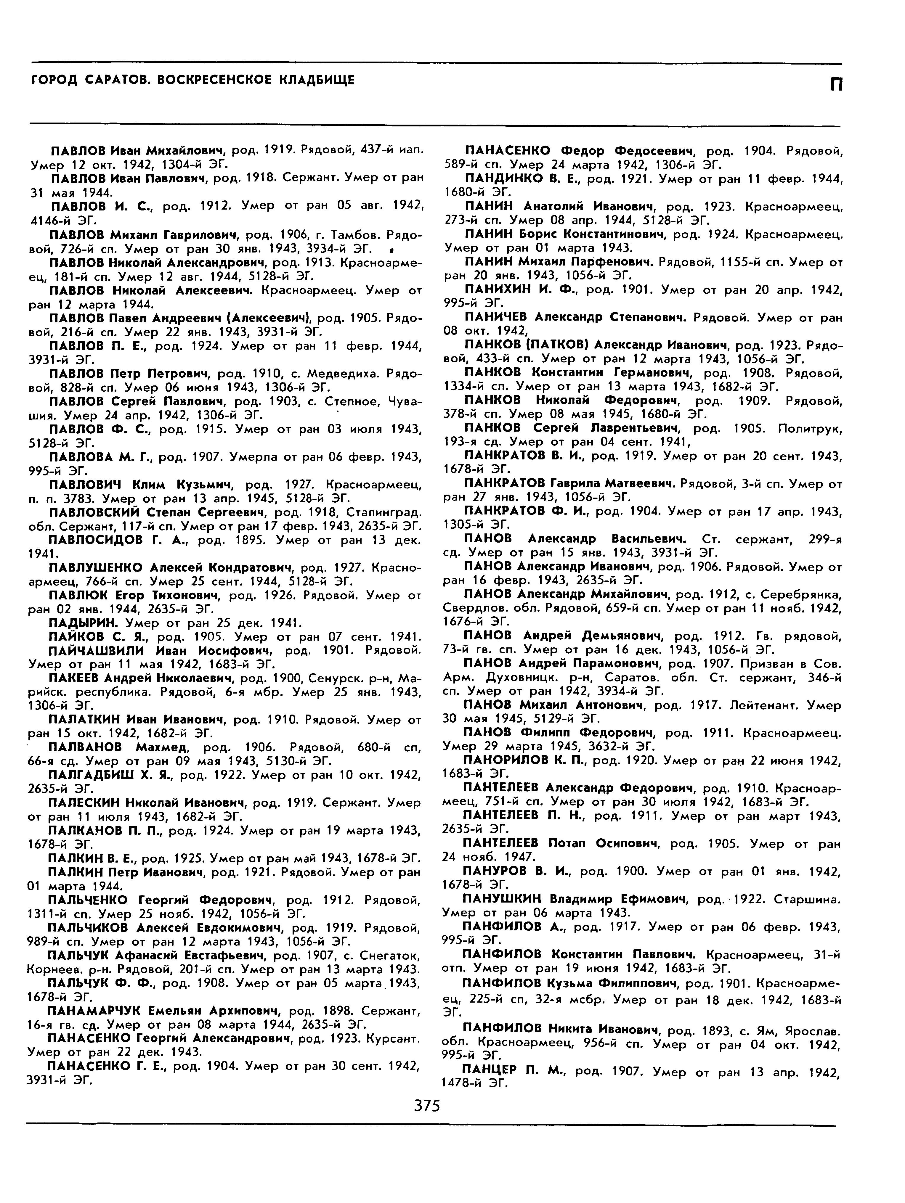 Политрук, Панков Сергей Лаврентьевич, 1905 г.р., скончался от стрелкового ранения левой ноги 04.09.1941 г., в г. Саратов