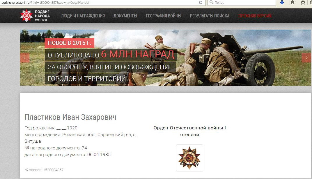 http://podvignaroda.mil.ru/?#id=1520004857&tab=navDetailManUbil Пластиков Иван Захарович