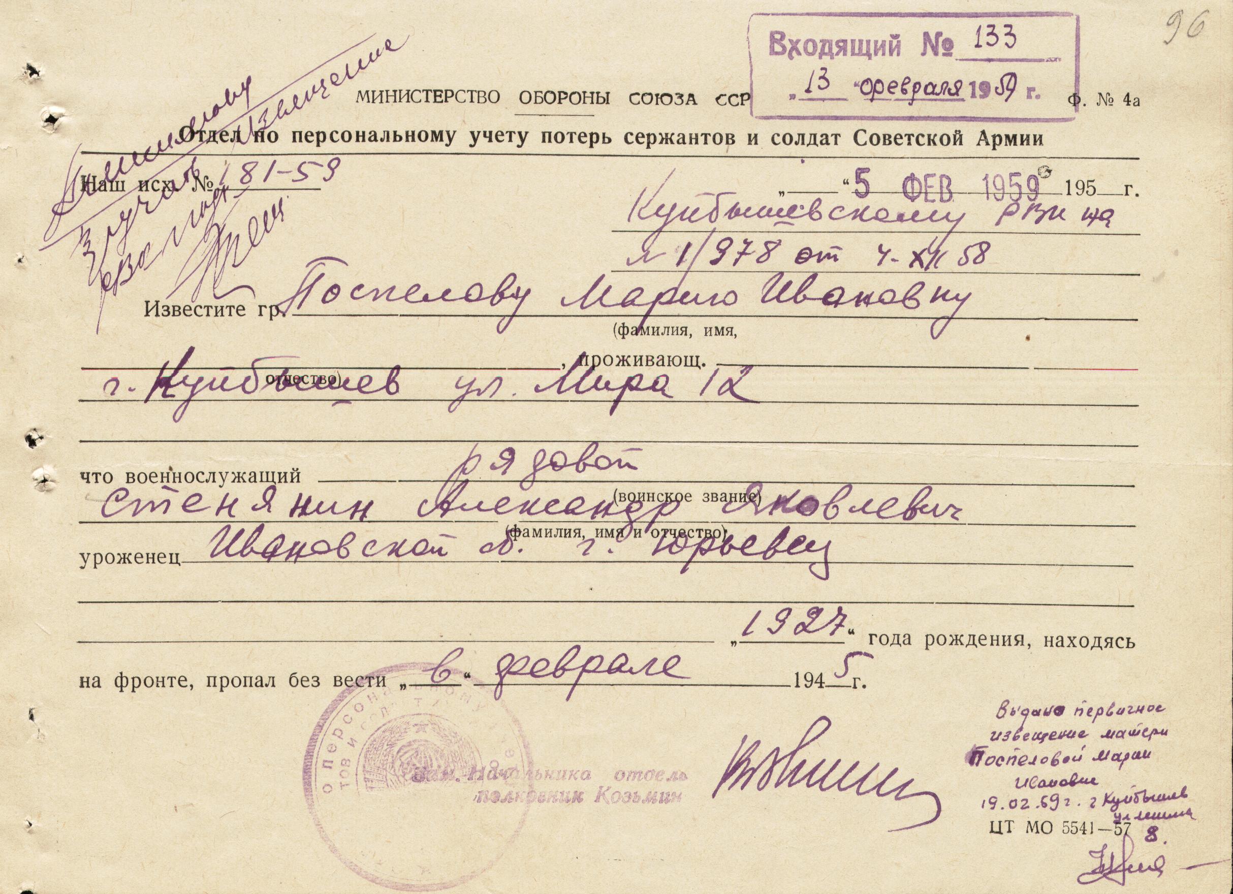 Re: СТЕНЯНИН АЛЕКСАНДР ЯКОВЛЕВИЧ