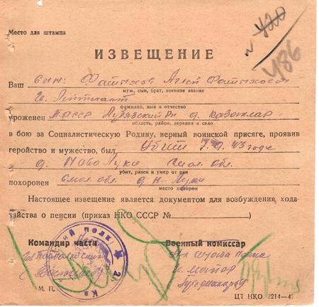 На памятник на родине внесен как ФАТЫЙХОВ