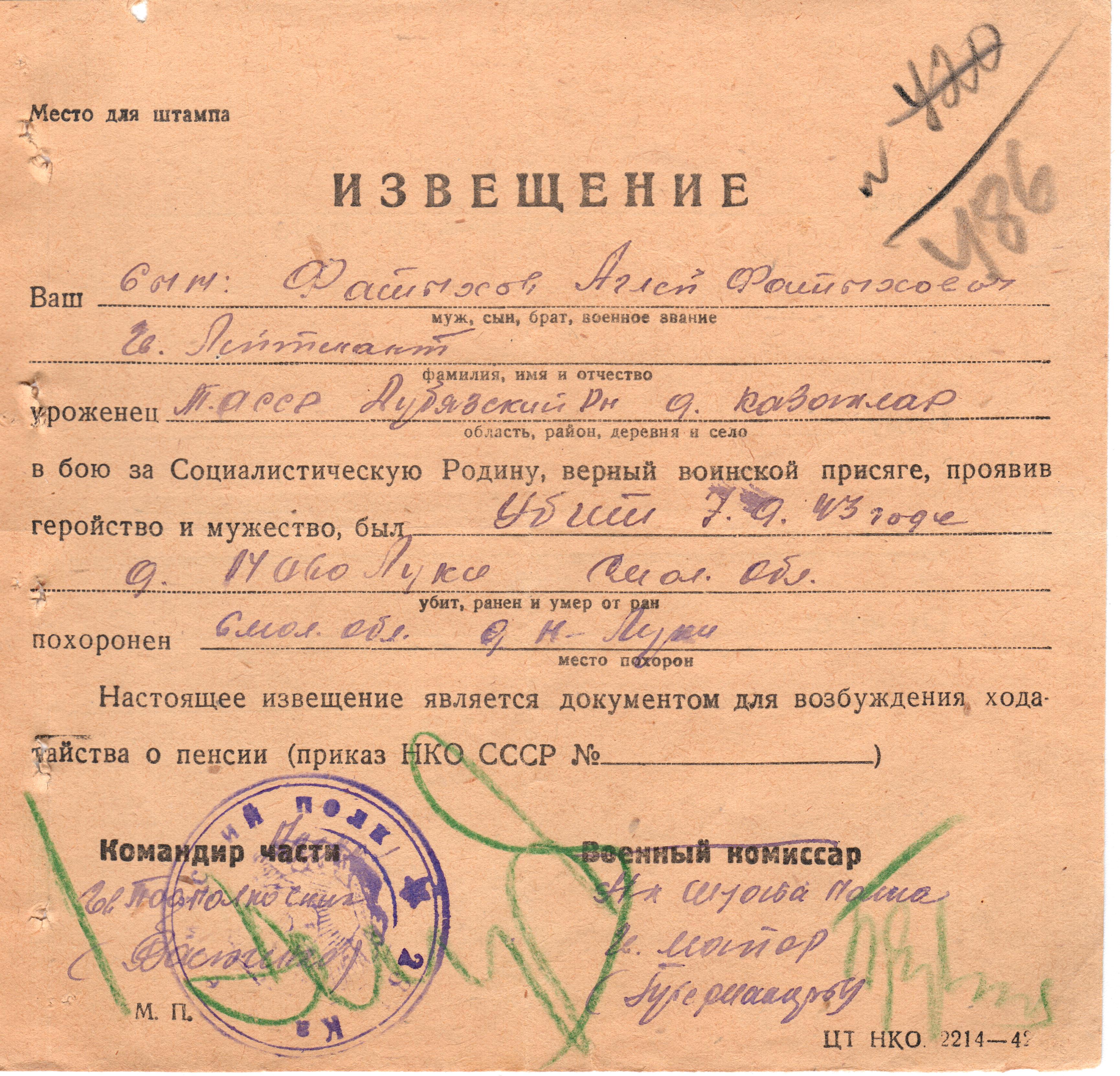 Дата выбытия 17.05.1942
