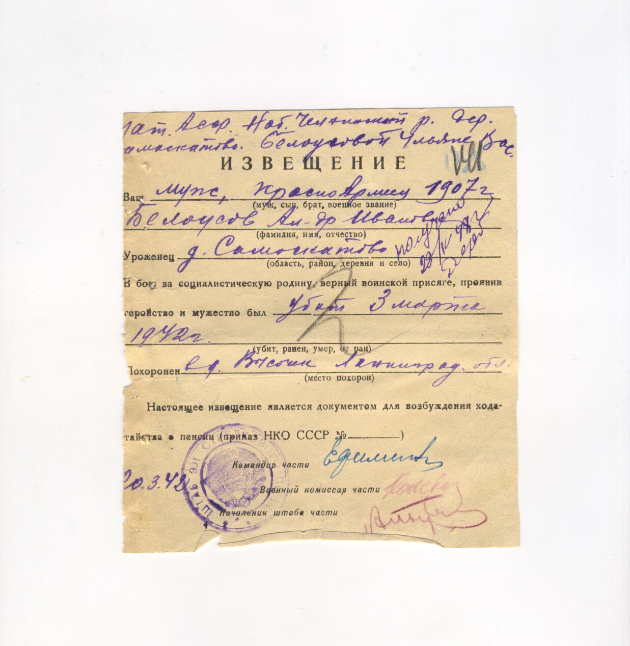 Re: БЕЛОУСОВ АЛЕКСАНДР ИВАНОВИЧ