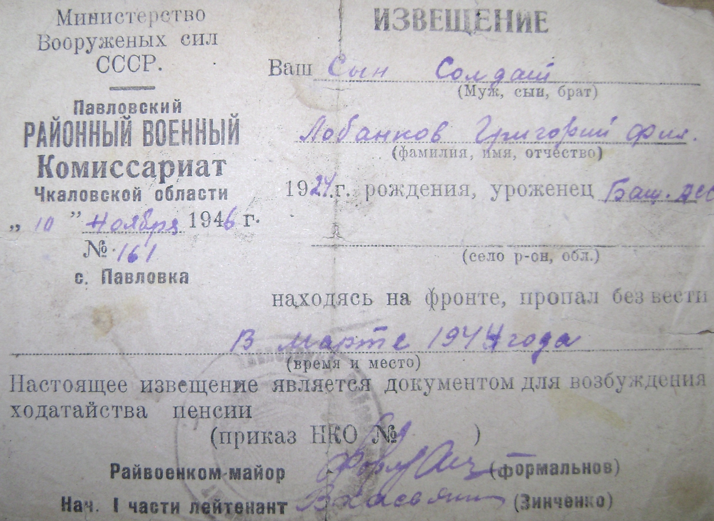 Re: ЛОБАНКОВ ГРИГОРИЙ ФИЛИППОВИЧ