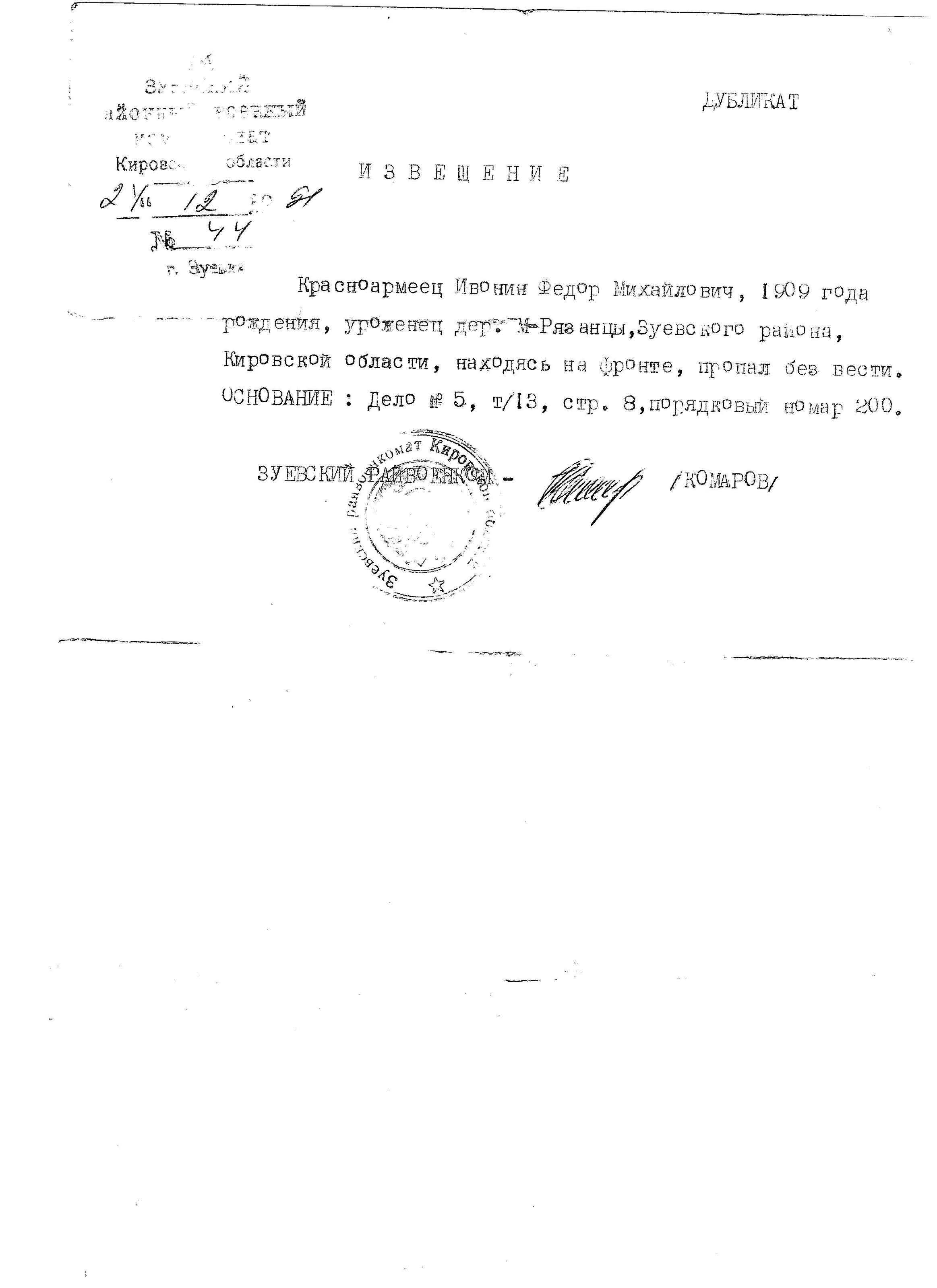 Re: ИВОНИН ФЁДОР МИХАЙЛОВИЧ