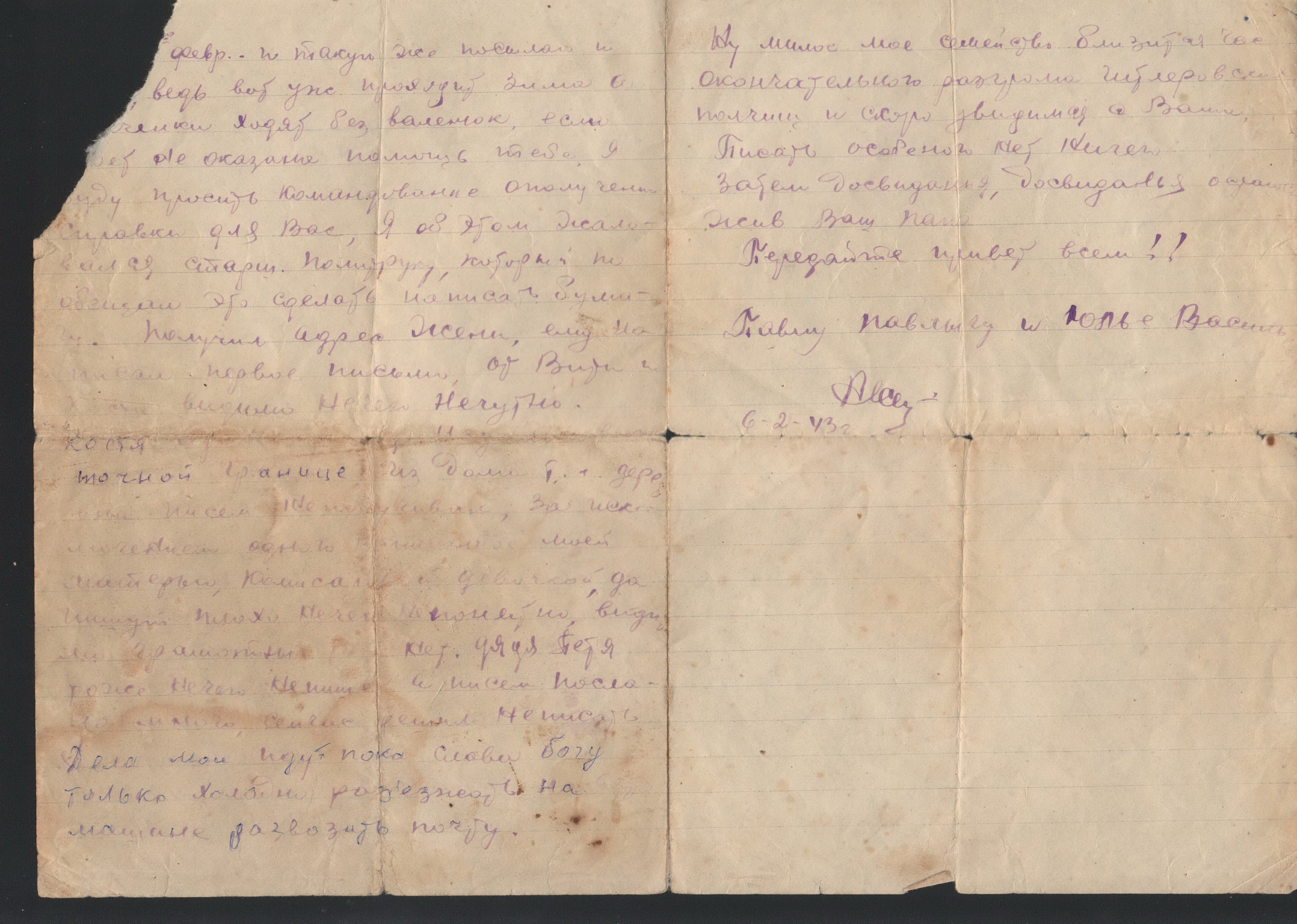 письмо с фронта от 6 февраля 1943 года!