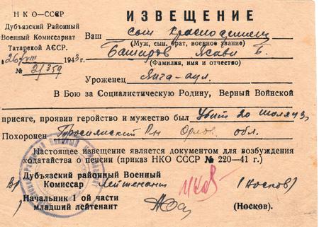 Опубликовано 1 февраля, 2014 - 14:45 пользователем Мидхатов Ильхам... Погиб(ла) Учетные данные область рождения: ТатАССРместо рождения: д. Янга-аул Дубъязский районРВК: Дубъязский РВКзвание: красноармеецместо службы: 292 сп,181 сддень выбытия: 20месяц выбытия: 7год выбытия: 1943причина выбытия: погибобл. выбытия: Орловская обл.место выбытия: Троснянский район Комментарии Re: БАШИРОВ ЯСОВИ БАГАВДИНОВИЧ Постоянная ссылка (Permalink) Опубликовано 3 февраля, 2014 - 11:53 пользователем Мидхатов Ильхам... Мидхатов Войдите или зарегистрируйтесь, чтобы отправлять комментарии