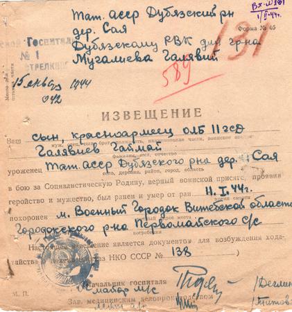 Дата и место призыва Татарская АССР, Дубъязский РВК