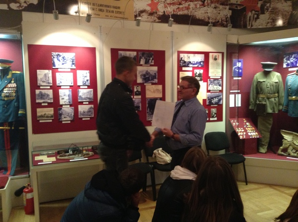 Поэтому, когда в начале октября мы с классом сына поехали в Казань, то заранее связались с удивительным, уникальным человеком — заведующим Музеем-мемориалом Великой Отечественной войны Михаилом Черепановым. Михаил Валерьевич широко известен среди российских поисковиков. Он нашёл сведения о многих и многих солдатах той войны — погибших ли, пропавших без вести или о вернувшихся домой со славой и наградами. Нашёл он информацию и о нашем Петре Петровиче. И мы договорились, что, когда приедем в Казань, всей группой придём к нему в музей. А когда пришли, услышали интереснейший рассказ о музее-мемориале и о поисковой деятельности.