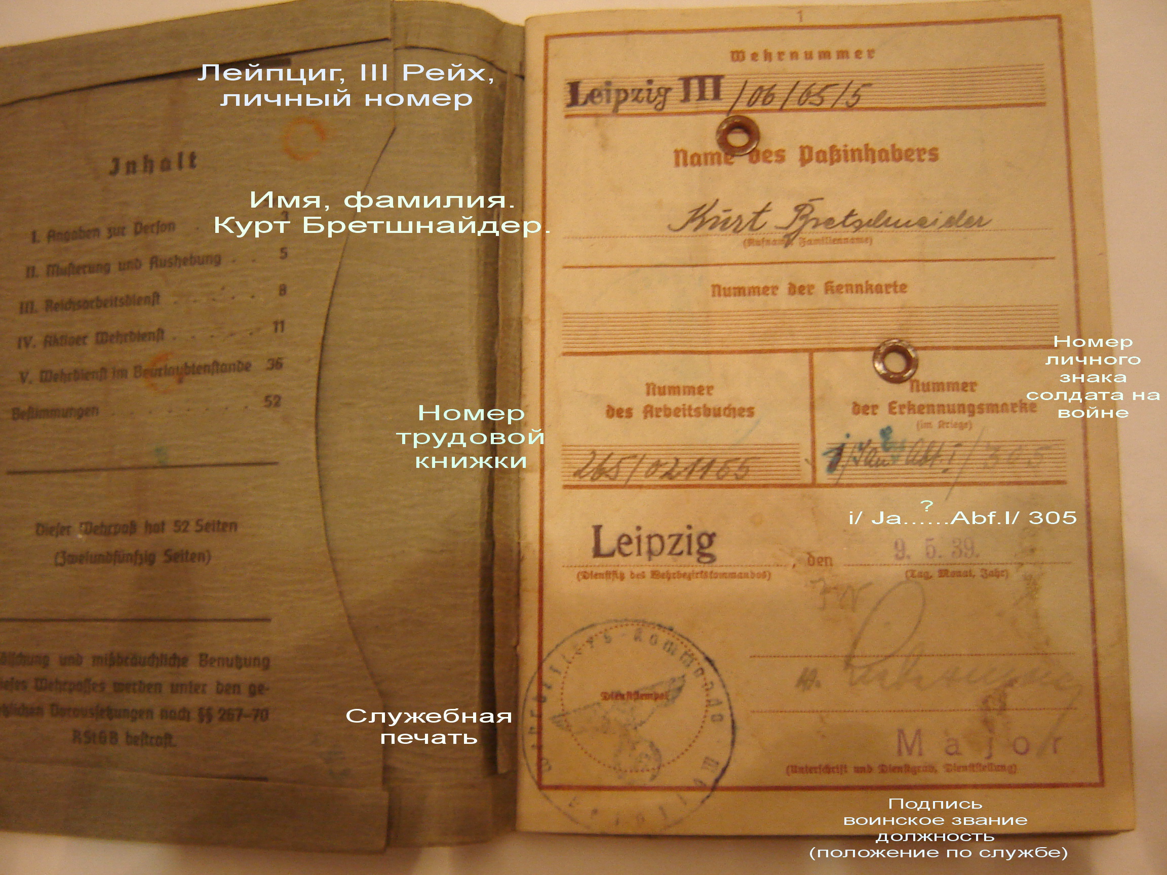 Есть только оригинал военного билета. Подробности перевести не смогла, немецкий готический шрифт Третьего Рейха - слишком трудно не только для меня, но и даже, с кафедры иностранных языков университета отказались помочь.