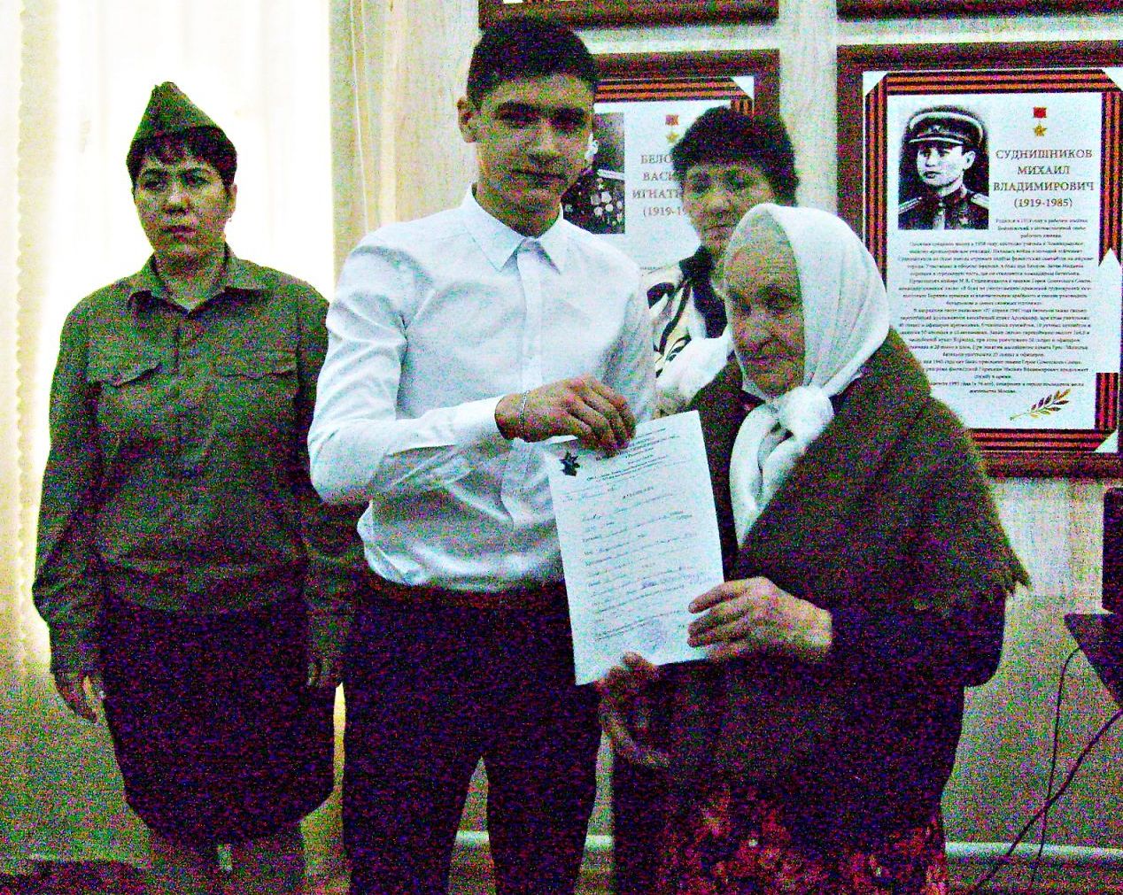 Дамир Шамилевич и Любовь Ионовна в своих приветственных речах рассказали, как было тяжело Бондюжским жителям в то трудное для всех время. Они горячо поблагодарили гостей за тот труд и те результаты, которые приносит работа ребят из поисковых отрядов.