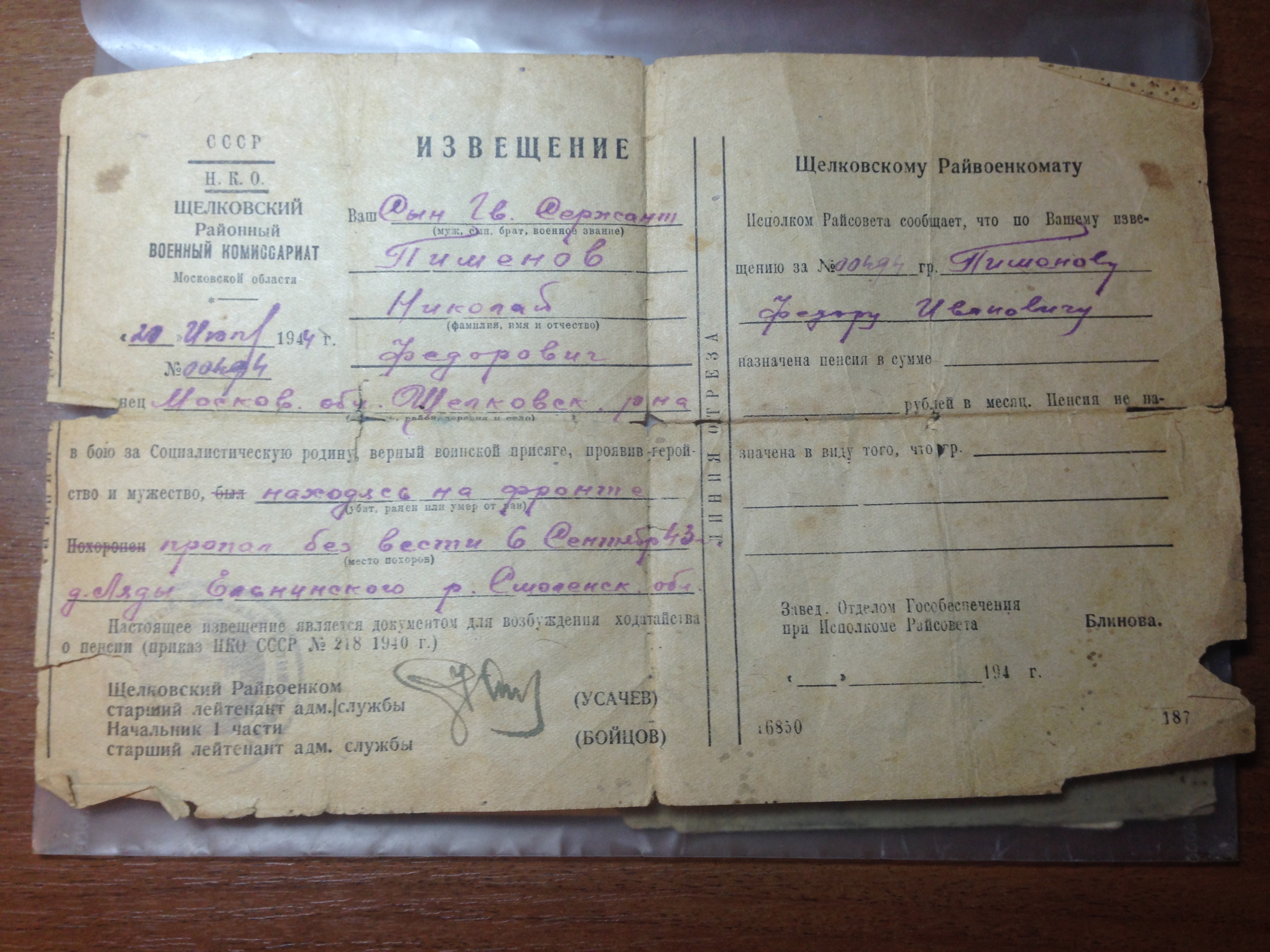 Извещение