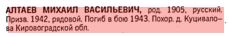 ищу прадеда Алтаева Михаила Васильевича 1905 года рождения где родился неизвестно.жена Кудашкина Матрёна Степановна дети Александр. Раиса. Екатерина. Дмитрий. Елена. Призван Алайский край Яменский р-он летом 1942 года проживал в селе Еланда . по сообщению военкомата пропал без вести под Сталинградом . По сообщению друга сгорел в танке. ПРОШУ ПОЖАЛУЙСТА ЕСЛИ ЗНАЕТЕ НА КАКОМ САЙТЕ ИСКАТЬ СООБЩИТЕ.