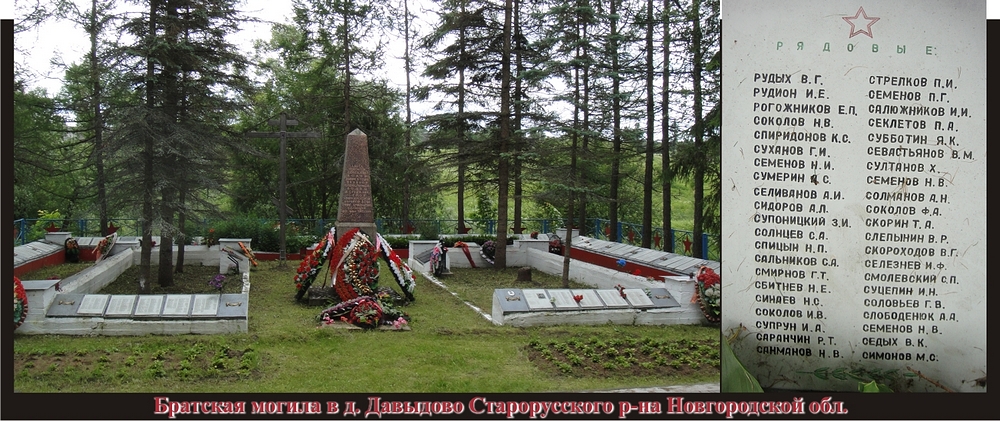 Стрелок 382 СП 84 СД (11 Армия, Северо-Западный фронт) красноармеец Сбитне Николай Ефимович (1900 г/р) 13 апреля 1942 г. погиб в бою у д. Сычево Старорусского района Ленинградской (ныне Новгородской) области. Похоронен в д. Давыдово Старорусского района.