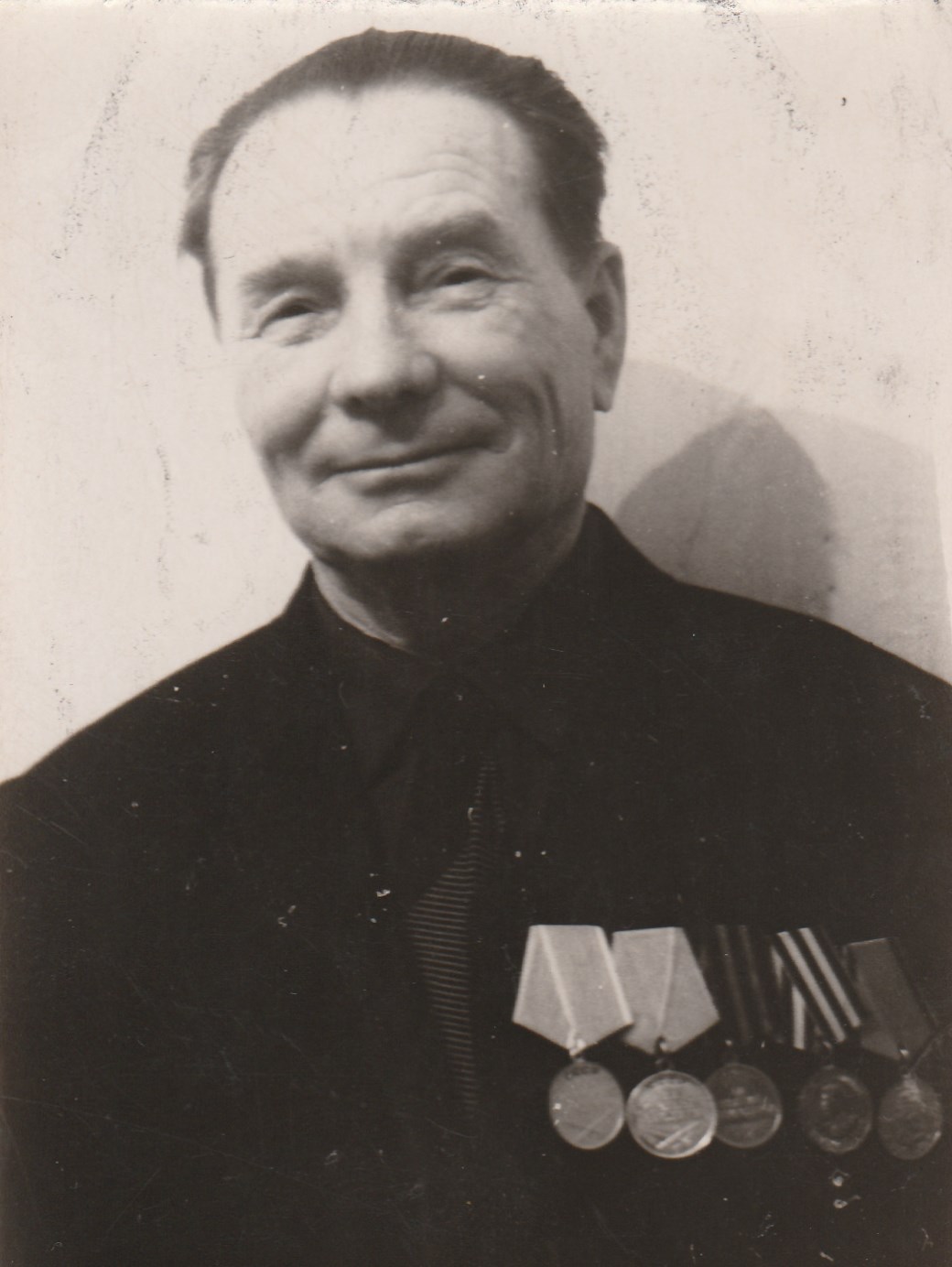 Призван в августе 1941 года.С февраля 1942 года воевал в составе 1019 стр.полка 307 стр.дивизии командиром миномётного взвода.В бою под г.Малоархангельск 20.02.1943 г. был ранен и впоследствии награждён медалью За боевые заслуги.После госпиталя направлен в 1553 аэр.полк ПВО в составе которого прошёл от Ржева до Кенигсберга.
