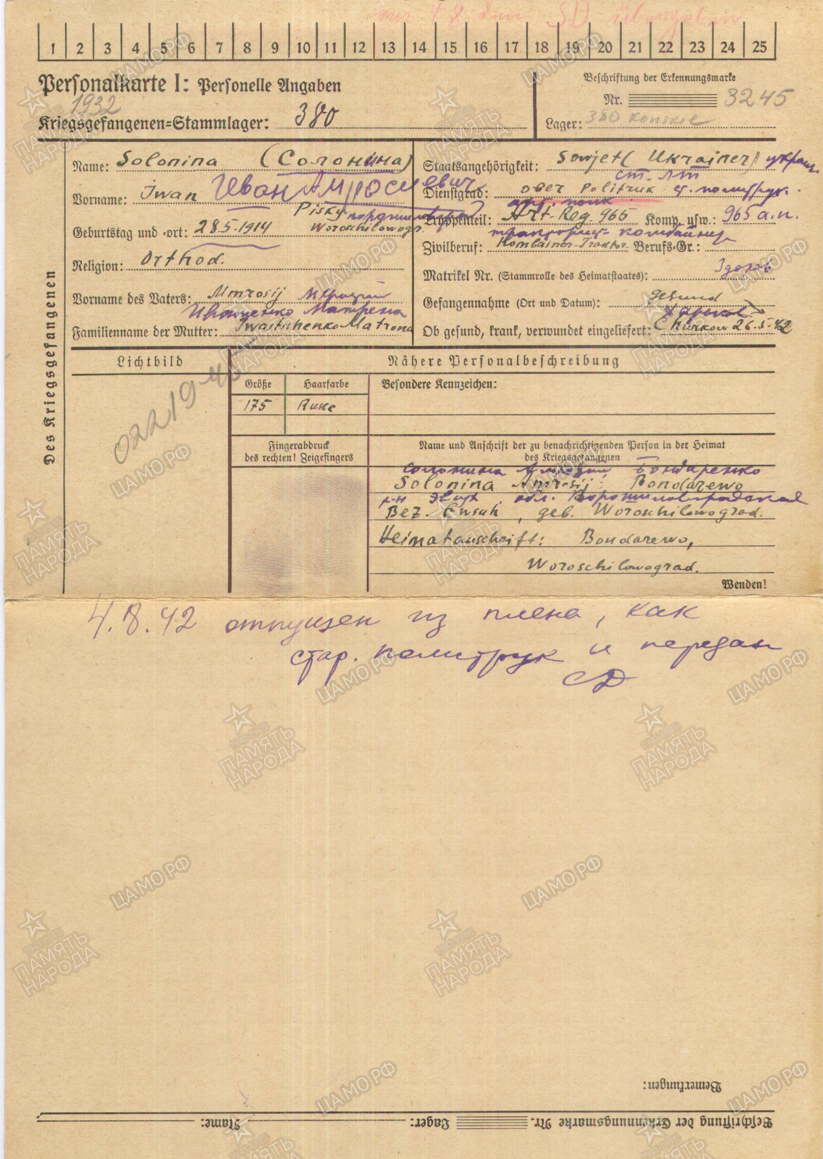 Re: СОЛОНИНА ИВАН АМВРОСИЕВИЧ