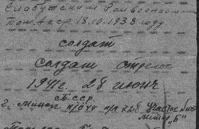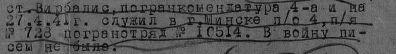 Судя по анкете призыв довоенный. Войну солдат встретил войну там, где служил. А служил он в Минске. По номеру почтового отделения вычислить номер воинского подразделения практически невозможно. Но вот что я нашла по номеру почтового ящика. Это о другом человеке, но похоже ваш тоже служил в погранотряде 105/4