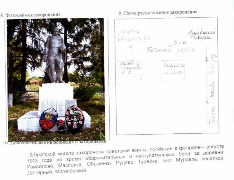 Первичное место захоронения Троснянский р-н, с. Муравль