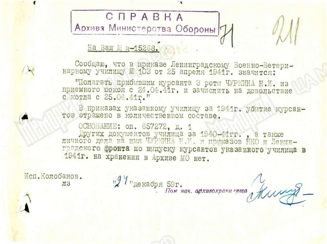 Это архивная справка ,в которой говорится о том...что списков убывших курсантов в архиве МО нет...указано только количество.