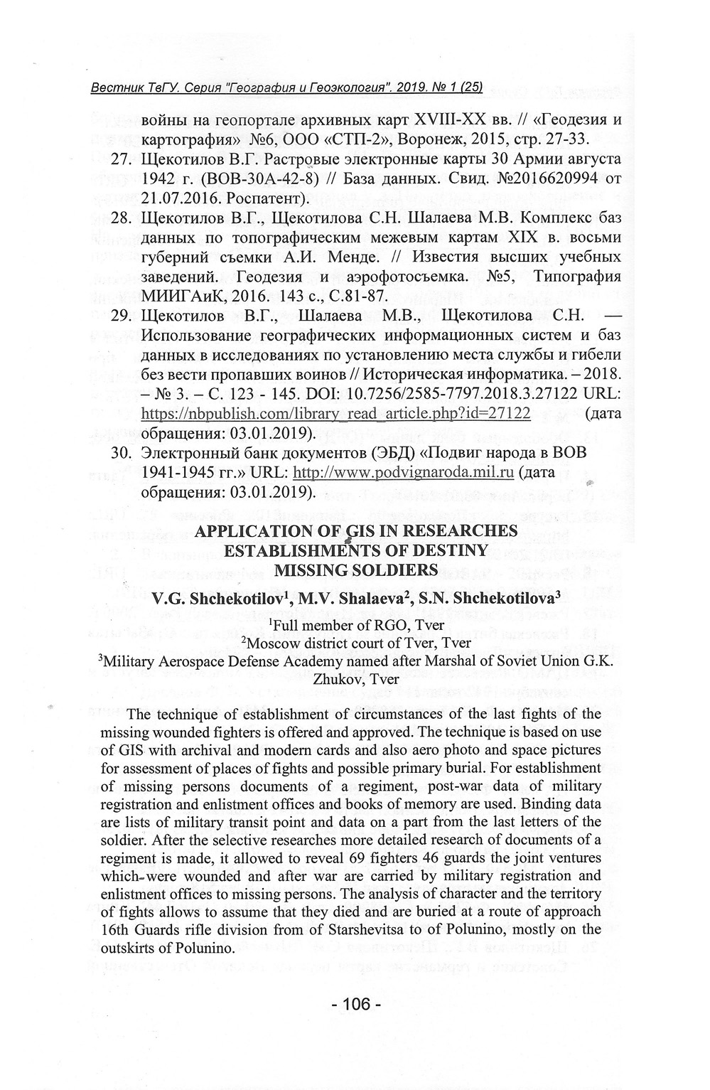"ПРИМЕНЕНИЕ ГИС В ИССЛЕДОВАНИЯХ УСТАНОВЛЕНИЯ СУДЬБЫ ПРОПАВШИХ БЕЗ ВЕСТИ ВОИНОВ "