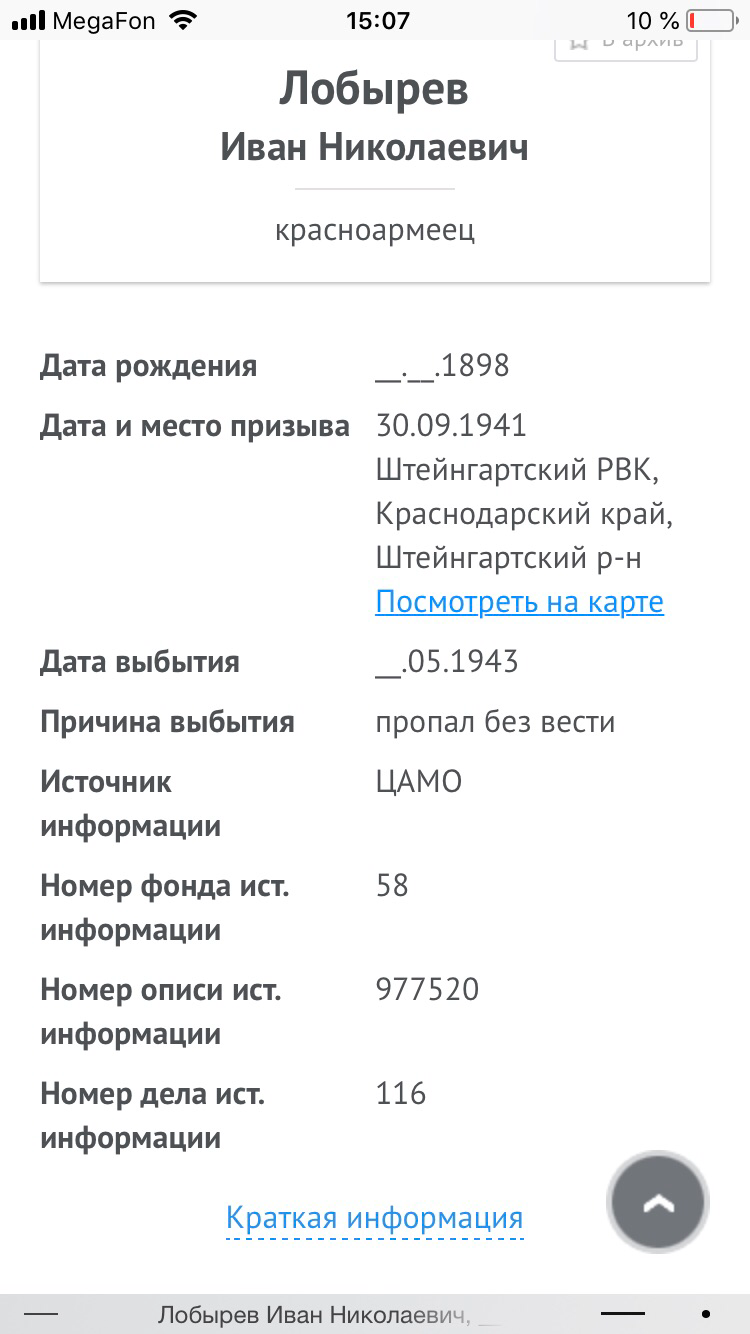 Спасибо большое за помощь! Я связывался с военкоматом Краснодарского края, данных нет объяснили что область была захвачена немцами и два раза передавалась. Все архивы уничтожены и никакую информацию дать не могли. Если есть специалист в архивной деятельности я за вознаграждение договорился, чтобы найти информацию о прадеде т.к не осталось ничего кроме того что я отправил. Нет ни фото и родственники ничего не знают, прабабушка осталась на тот момент с маленькими детьми и выживали как могли. Мне хочется верить что подвиг наших воинов бесследно не пропал и останется информация о человеке( где погиб( примерно по датам где проходили бои), какая часть, какие войска, может фото осталось где то, да что нибудь. Я созванивался с РВК, писал на Подвиг Народа, в интернете в силу свои знаний пытался найти информацию.. толком не вышло. Надеюсь на специалистов в этой области.