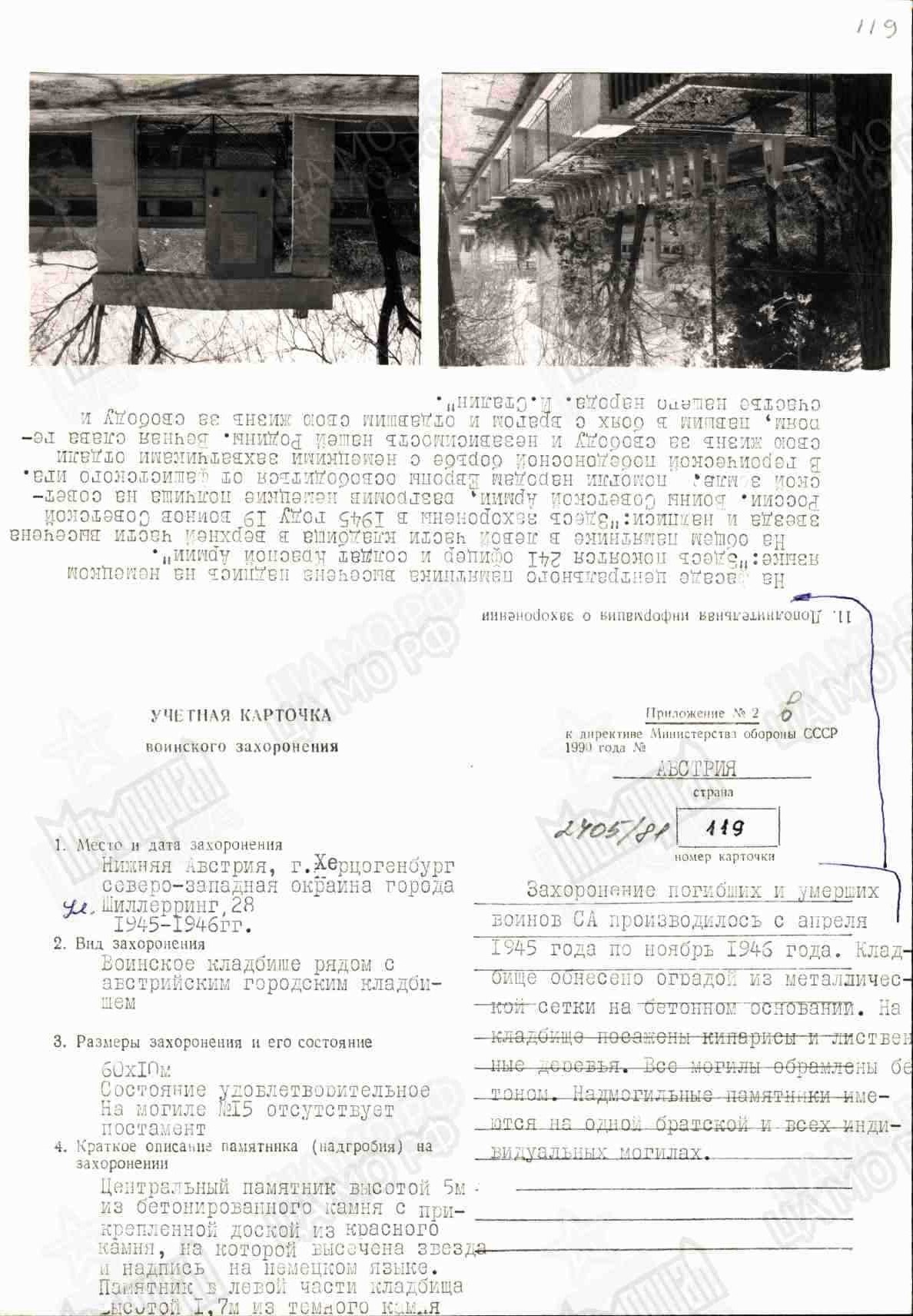 Здравствуйте. Мой дядя погиб в Австрии, 18 апреля 1945 года . Бойчук Иван Антонович 1924 года рождения. Призван Черепановским РВК Новосибирскрой области в 1942 году. 105 гв. дивизия 349 полк , 137 гв. стрелковый полк , 38 корпус, 3 Уркаинский Фронт. По предварительным данным он погиб в Нижней Австрии у села Инцерсдорф округа Санкт- Пёлтен , затем в 1946 году перезахоронен в братскую могилу на военное кладбище города Герцогенбурга. Но в списках его нет.