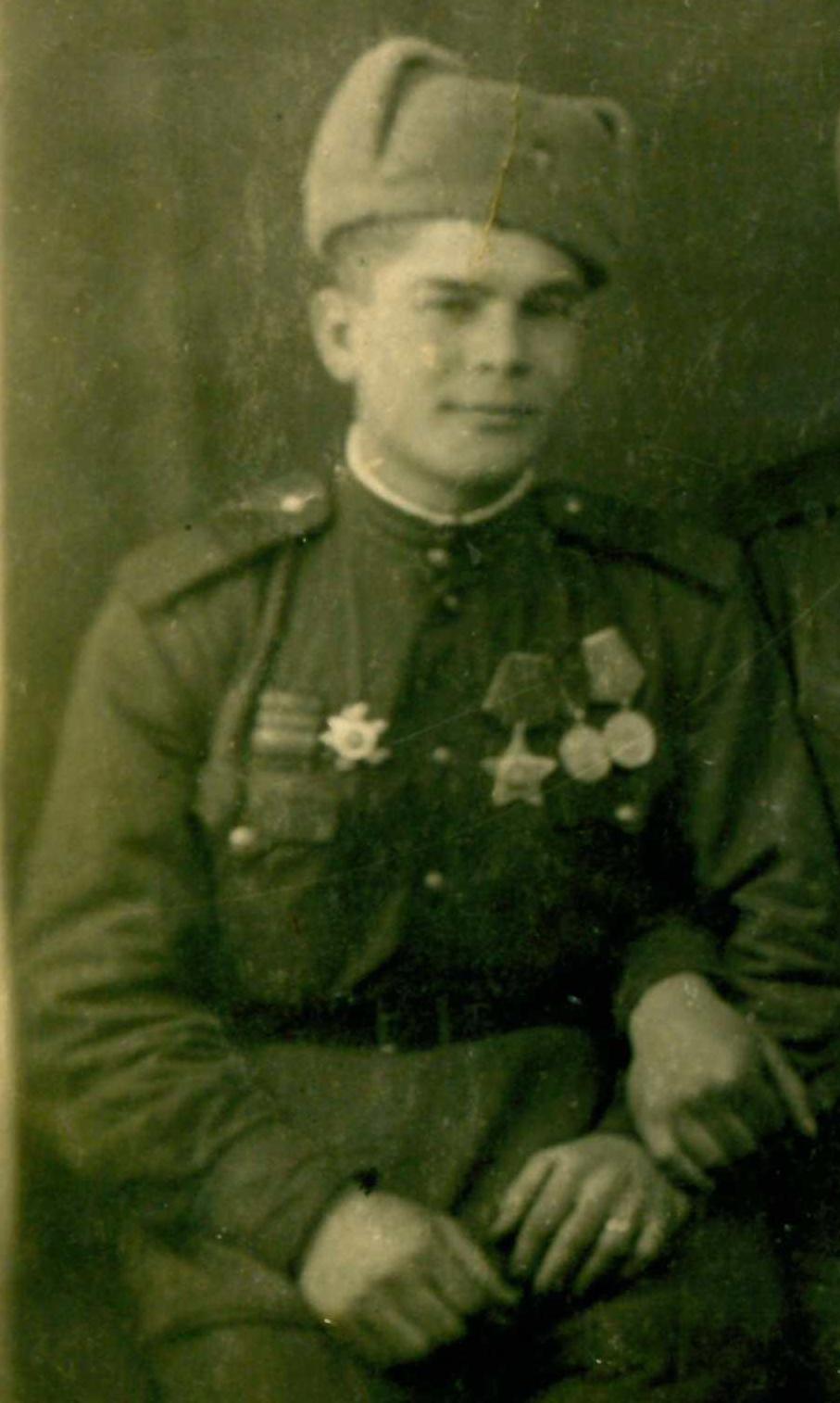 а можно как то узнать за что награжден . на фотографии видно несколько наград . и одна похожа на орден славы(не понятно какои степени) и на правои стороне похож на Орден Отечественной войны.