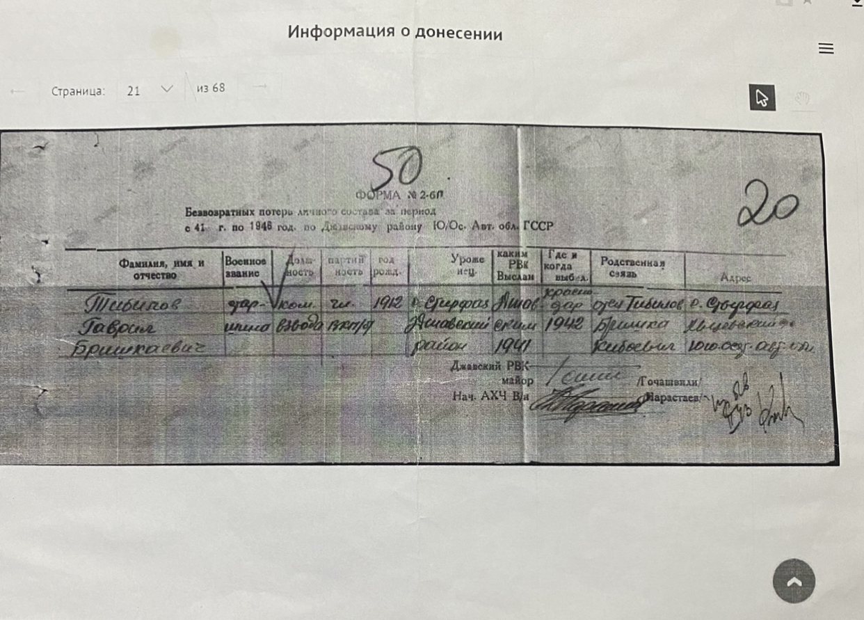 Здравствуйте! Ищу деда Тибилова Гаврила Бришкаевич 1912г.Он пропал без вести в феврале 1943г , призван