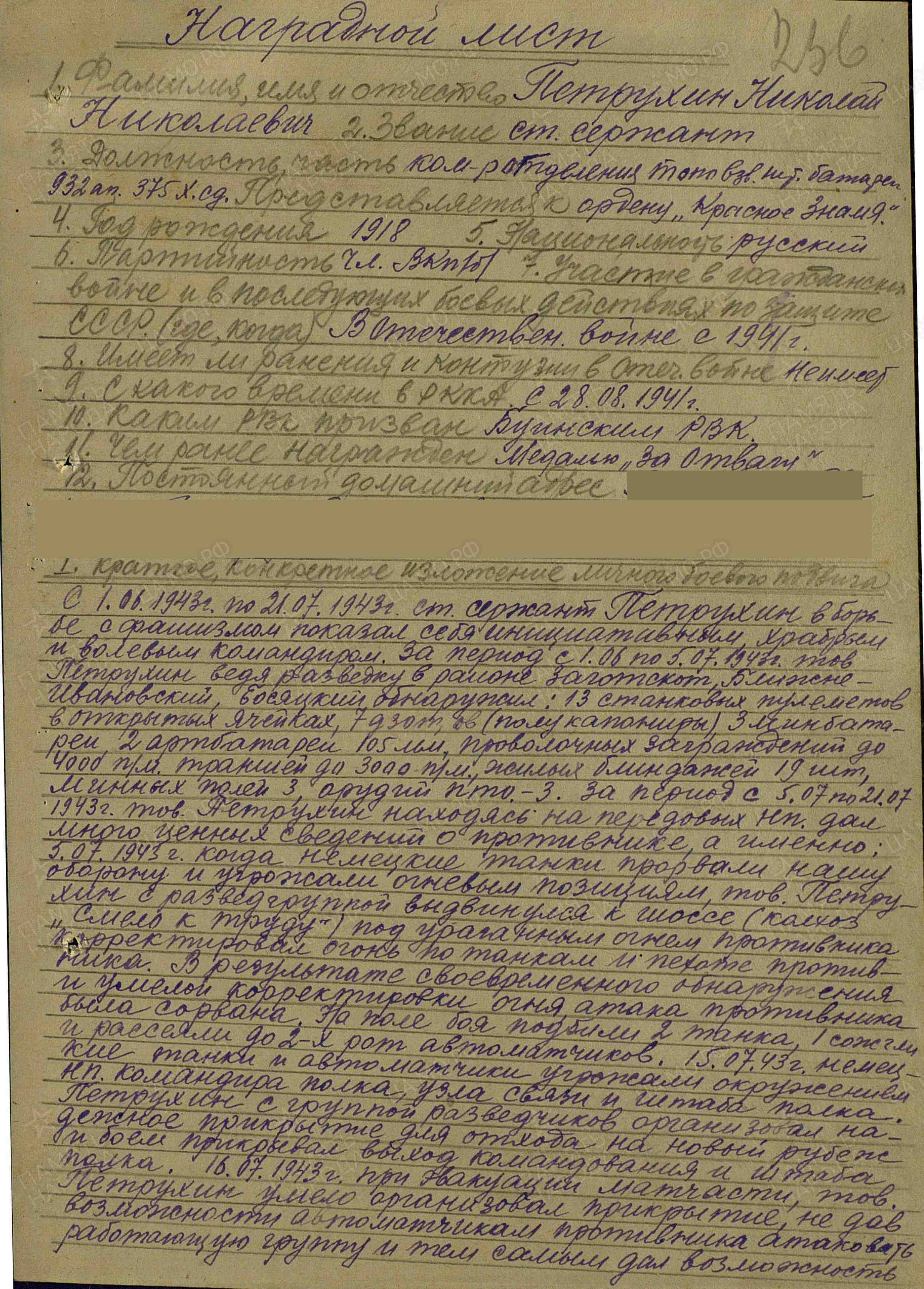 ПЕТРУХИН ГЕННАДИЙ ВАСИЛЕЬВИЧ, г.р. 1924, Татария, моб. Кировским РВК г.Казани, 694 иптап, погиб 24.08.43, Украина,Харьковская обл., д.Гаврилово, оп. 18001, д. 984