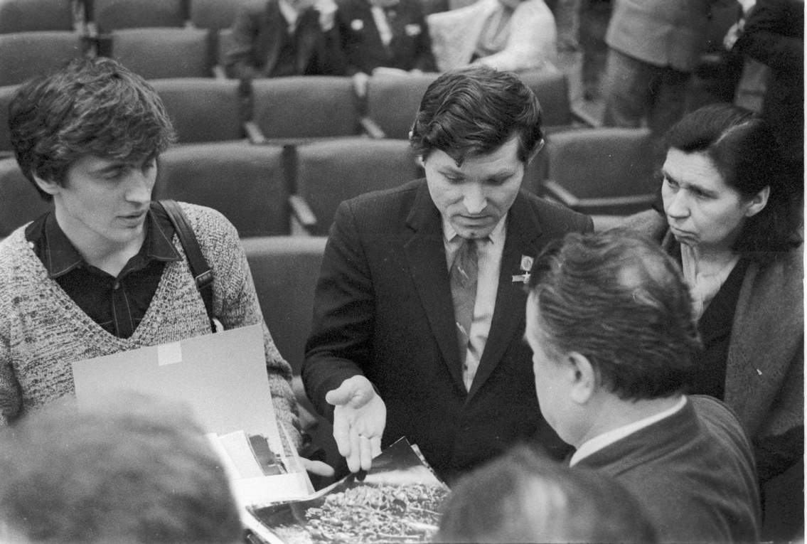 На снимке: Черепанов показывает Иконникову на слете в Калуге фото с сотнями найденных в Мясном Бору в 1987 году останков советских солдат.