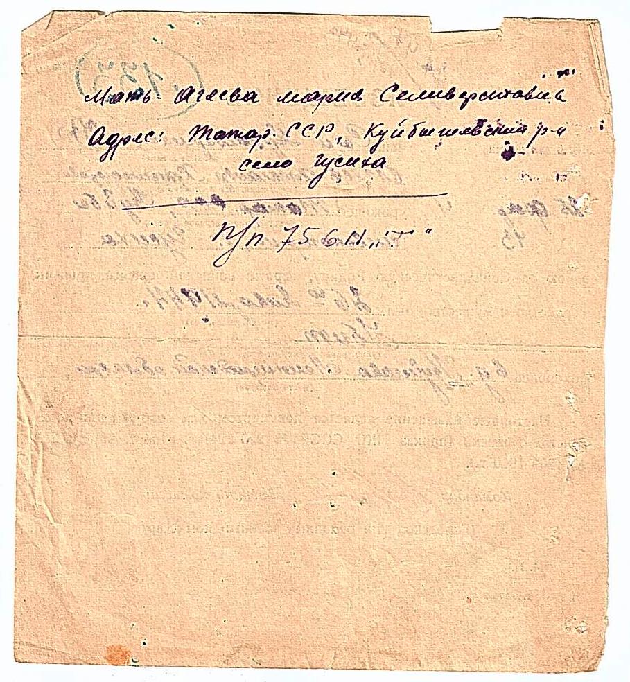 Место рождения Татарская АССР, Куйбышевский р-н, Гусихинский с/с, с. Гусиха