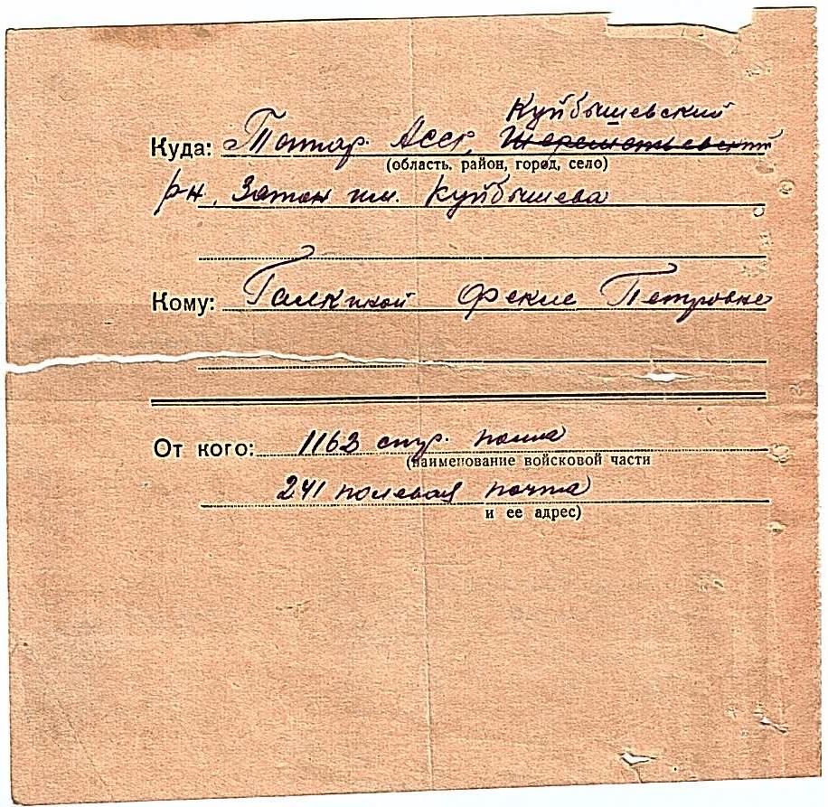 Опубликовано 8 июня, 2009 - 11:50 пользователем Михаил Черепанов Учетные данные г.р.: 1901место рождения: Спасский р-нРВК: Куйбышевским РВКзвание: кр-цместо службы: 1162 сп,352 сддень выбытия: 28месяц выбытия: 10год выбытия: 1941причина выбытия: побл. выбытия: Московская обл.место выбытия: Волоколамский р-н,с.Михайловкаприм.: 0 Комментарии Re: ГАЛКИН ГРИГОРИЙ СЕМЕНОВИЧ Постоянная ссылка (Permalink) Опубликовано 20 ноября, 2013 - 13:09 пользователем Мидхатов Ильхам... Извещение получила жена Фекла Петровна. Мидхатов Войдите или зарегистрируйтесь, чтобы отправлять комментарии