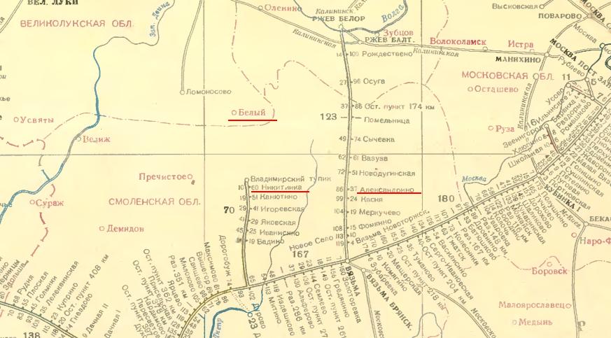 Здравствуйте, Тагир! Вероятно, имеется ввиду Александровка Оленинского района. Находится северо-восточнее Белого, близко к границе районов. Я Вам писала, что ответил Дмитрий Жук (командир поискового отряда Оленинского района) по поводу этой Александровки. Наступление велось с юго-западного направления и южнее Белого. По картам, которые в музее, наши войска дошли до Никитинки. К сожалению, ситуация с наступлением была такая, что командиры бригад и дивизий не располагали достоверными сведениями, где находятся подразделения. Галина Ивановна сказала, что было более 400 деревень. Возможно, Александровка не была нанесена на карты... Оленинский район между Бельским и Ржевским.