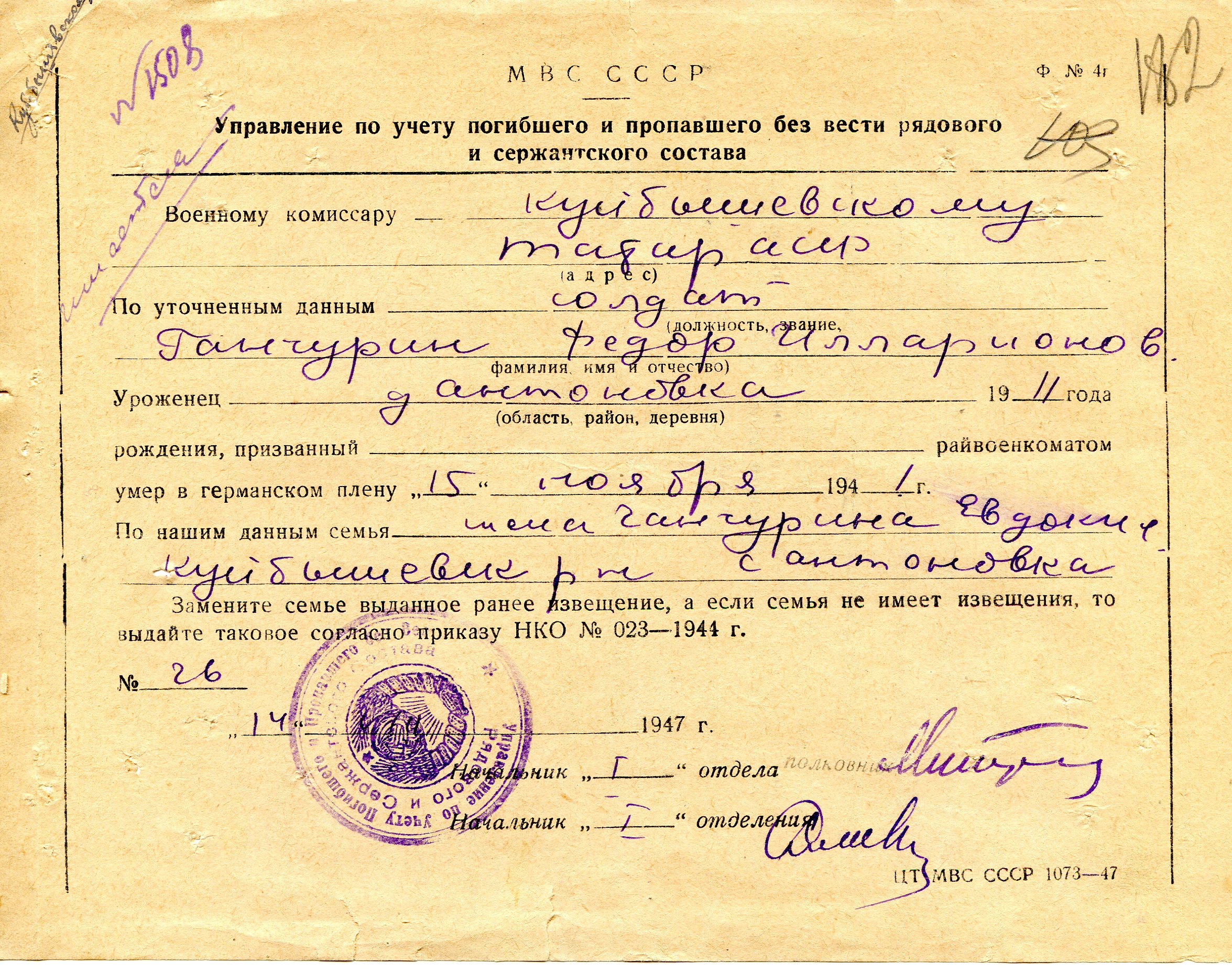 Номер дела источника информации 2463 http://obd-memorial.ru/Image2/imagelink?path=846ea58e-9900-4c70-9a4b-a81...
