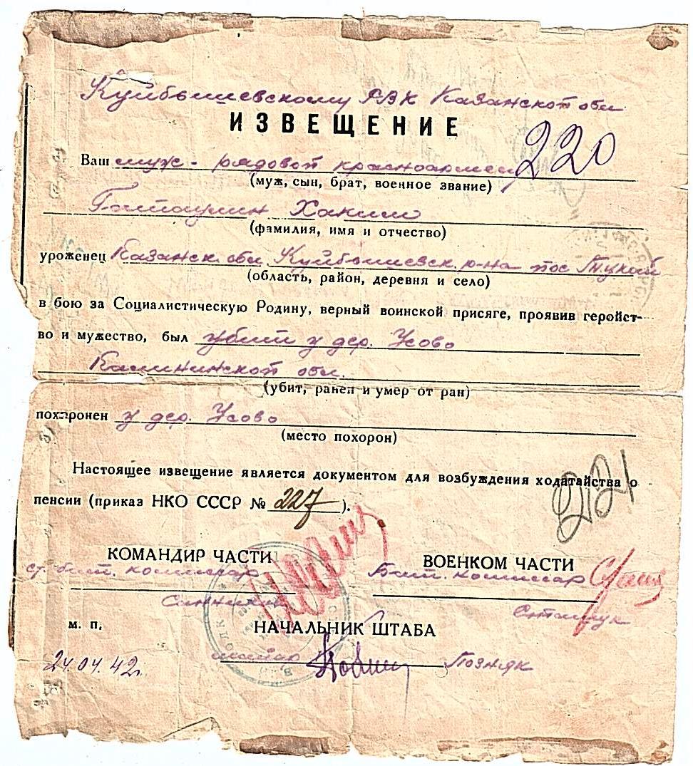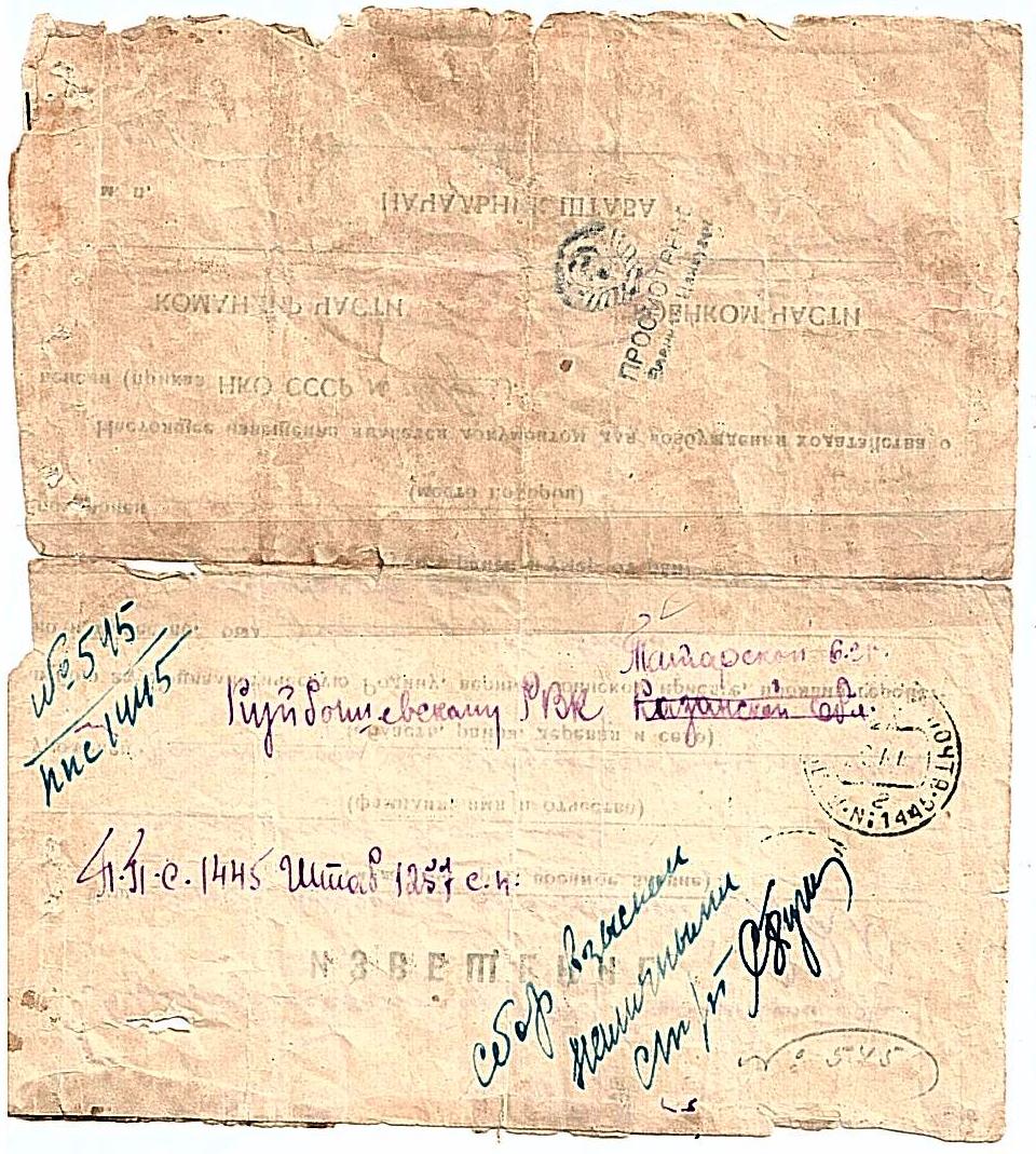 Дата и место призыва Куйбышевский РВК, Татарская АССР, Куйбышевский р-н